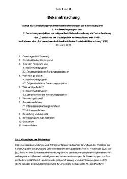 Insgesamt wird durch die Förderung von zeitgeschichtlicher Forschung angestrebt, den bisherigen, u. a. über die FIS-Förderrichtlinie gewonnenen Forschungsstand zur Sozialpolitik durch eine geschichtswissenschaftliche Perspektive zu erweitern.
