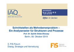 Im Ergebnis sollen Kategorien für eine Systematisierung von Schnittstellenproblemen und Bearbeitungsstrategien erarbeitet werden, die auch für andere sozialpolitische Fragestellungen nutzbar sind. Von besonderer Bedeutung ist dabei der Austausch zwischen auf unterschiedliche Sektoren (bspw. Arbeitsmarkt-, Renten-, Jugendhilfepolitik) spezialisierten Wissenschaftler/inne/n.